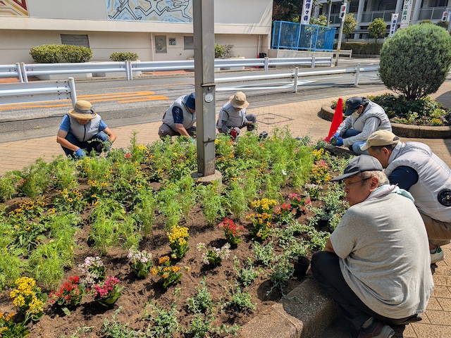 公園や店舗・ビル前花壇の管理を行っています。年3回の植替え作業の他、各花壇に週1、2回程度咲き終わった花を摘む「花がら摘み」や「水やり」等の手入れ作業を行っています。
